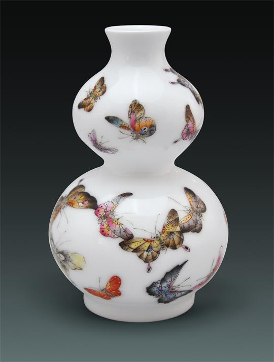 作品名稱:《百蝶圖》瓶材 質:大球泥