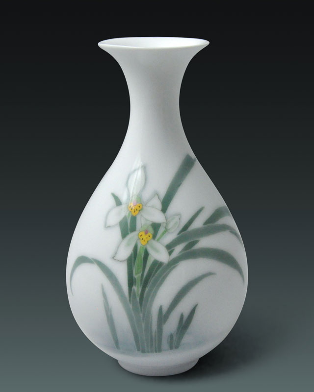 作品名稱:《品高香遠(yuǎn)》玉壺春瓶材 質(zhì):大球泥工 藝:釉下五彩作品規(guī)格:16CM作 者:朱占平 中國(guó)陶瓷藝術(shù)大師創(chuàng)作日期:2015年產(chǎn)品編號(hào):DQN-P150034