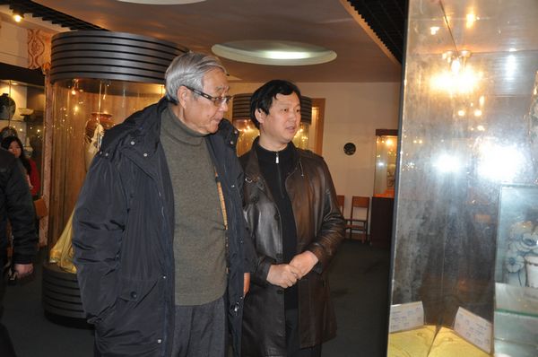11月22日,清華大學(xué)美術(shù)學(xué)院教授、中國陶瓷行業(yè)終身成就獎得主張守智先生偕其夫人及友人來醴陵視察。湖南大球泥瓷藝有限公司董事長滕召華陪同,一起參觀了醴陵陶瓷研究所陳列展廳,展廳展示了300余件近現(xiàn)代醴陵釉下五彩瓷精品,如1915年獲巴拿馬萬國博覽會金獎的《扁豆雙禽》及“毛瓷”等。對于每一件瓷器的來由,張教授都娓娓道來,尤其是60~70年代的“毛瓷”“國宴瓷”,張教授更是曾親身參與了制作,一言一句,飽含回憶與深情。