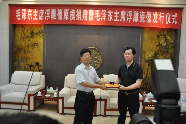 8月1日,湖南大球泥瓷藝有限公司在韶山毛澤東同志紀念館舉辦“毛澤東主席浮雕像原模捐贈暨毛澤東主席浮雕瓷像發(fā)行儀式”。紅色雕塑家張松鶴1965年創(chuàng)作的毛澤東主席浮雕像原模、當年制作毛澤東主席生活用瓷的主要原料——大球泥樣本、當天首發(fā)的限量版毛澤東主席浮雕瓷像0001號瓷盤被捐贈給韶山毛澤東同志紀念館收藏陳列。