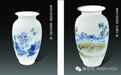 一曲《青花瓷》帶我們領(lǐng)略了整個畫面,大球泥瓷配青花果然耳目一新,眼前一亮,讓人愛不釋手。天青色,是瓷器中最珍貴的一種顏色。因為要使燒制的瓷為青花色,傳說需得在煙雨天氣中燒制,才能使釉色呈現(xiàn)“雨過天青云破處”般的色彩。后世有之形容為“細(xì)紋如擬冰之裂,在玉壺中可並肩”。這批由中國景德鎮(zhèn)工藝美術(shù)大師喻木華到湖南大球泥瓷藝有限公司現(xiàn)場創(chuàng)作的青花大球泥瓷給我們帶來了不一樣的美感和享受,我們堅信:大球泥瓷與青花的結(jié)合迎來的不僅僅只是一曲《青花瓷》,這只是一個開始,我們更期待一支完美的華爾茲。。