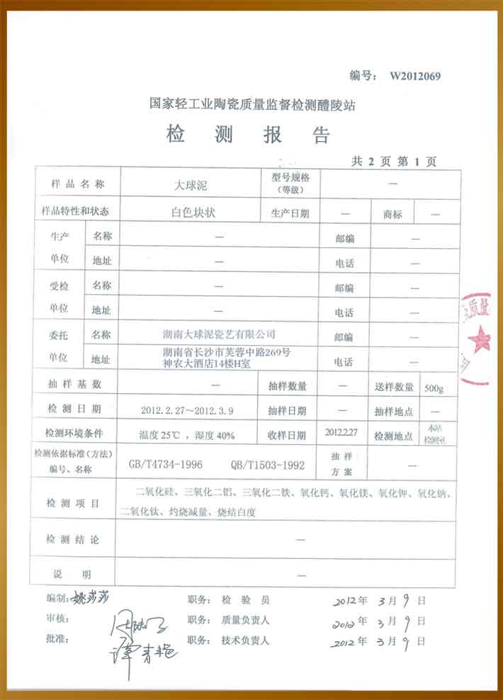 當前位置:大球泥首頁 > 大球泥原料 > 檢測報告