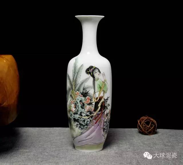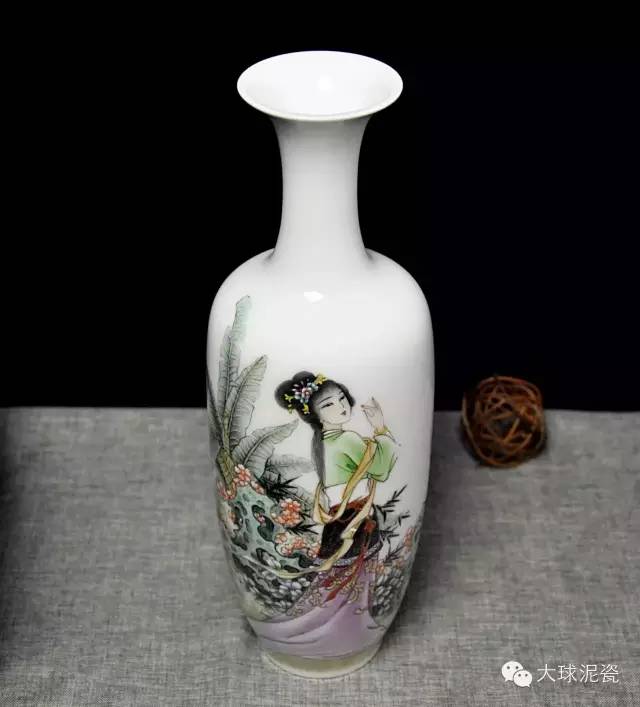 《如花似玉》柳葉瓶,以大球泥為主要材料,經(jīng)1400°C高溫?zé)贫伞F淦啃驮O(shè)計精美、畫面端莊大方、瓷質(zhì)致密不漏,是珍貴的陶瓷藝術(shù)品!度缁ㄋ朴瘛妨~瓶,由高級工藝美術(shù)大師曾亞琴創(chuàng)作,器型撇口,短頸,豐肩,肩下削瘦至足,足內(nèi)凹。瓶身挺拔秀美,通體素凈,雍容中不失典雅,其氣韻之美,代表了大球泥瓷的制瓷技藝。