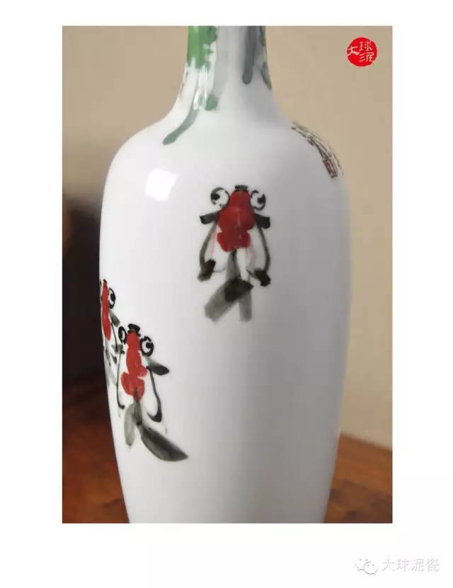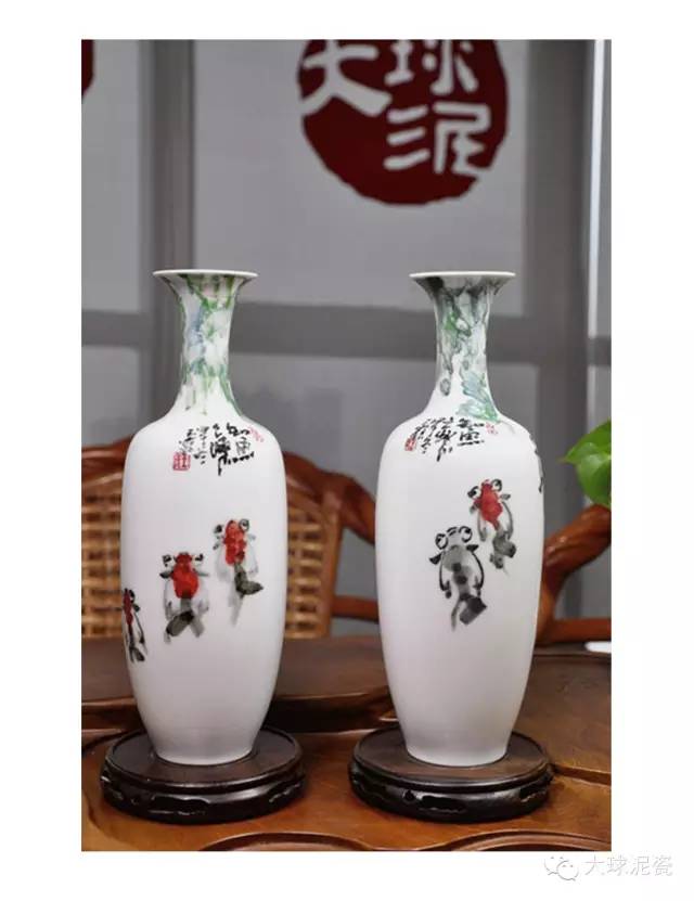 《知魚之樂》柳葉瓶,作者采用釉下彩技藝,以寫意手法在大球泥瓷瓶上繪畫魚兒力爭上游的情景。器形簡約優(yōu)雅,瓶身直挺,大氣而精致。這件藝術作品以粗線條展現(xiàn)金魚的形體本質,大膽而隨性,整體畫面又摒棄了任何輔助裝飾,回歸于魚的本身。點睛之筆,看似隨意而落,卻是神來之墨,意韻靈動。這些粗狂線條構成的意象展示在大球泥瓷上,使人猶如品讀現(xiàn)代主義詩。 “子非魚,焉知魚之樂”出自《莊子.秋水》。該句流傳千古,具有深刻的哲學蘊義。通常來說,它的意思主要是指人心永遠是屬于個人的,一個人的快樂、悲傷只有自己才能真正感悟,外人即使再了解,也無法真正感同身受。這件大球泥瓷藝術品以此為題材,可謂妙韻天成,是由北方地產(chǎn)大亨特別定制,指定創(chuàng)作。