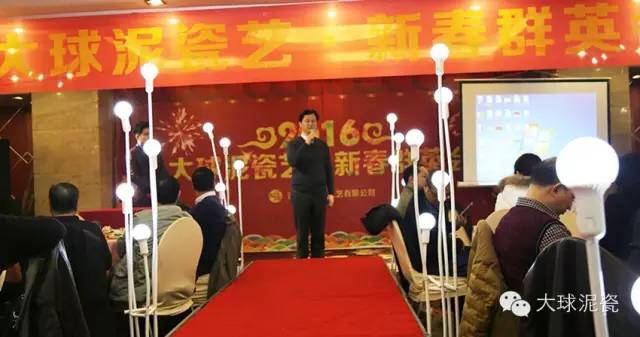 值此農(nóng)歷新年即將到來之際,大球泥瓷藝為感謝一路以來一直關(guān)心和支持我們的各位朋友,于2016年1月16日舉行《大球泥瓷藝·新春群英會》。原計劃舉辦大型新春團(tuán)拜會,但考慮到大家節(jié)前忙于工作,改為舉辦“新春群英會”,邀請了部分嘉賓,有政府相關(guān)廳局領(lǐng)導(dǎo)、工藝美術(shù)大師、陶瓷收藏家、各類媒體代表和各商會會長代表等百人參加。