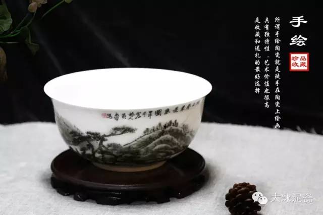 《湖上春來》大球泥瓷碗由景德鎮(zhèn)工匠拉坯,工藝美術(shù)大師黃永平創(chuàng)作,畫面中山清水秀,色調(diào)清雅、淡逸,線條變化自然,一股磅礴大氣之感躍然而出。
