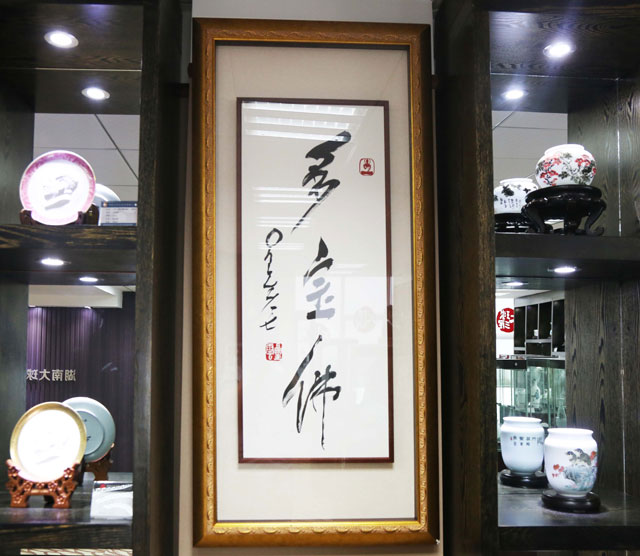 2014年3月14日,在旅美畫(huà)家李自建的引薦下,滕董有幸與星云大師結(jié)緣,并將001號(hào)《釋迦牟尼佛瓷塑像》及《春滿人間》雙面瓷板畫(huà)捐贈(zèng)給星云大師并永久珍藏于佛光山。星云大師特地為《釋迦牟尼佛瓷塑像》題寫(xiě)墨寶《多寶佛》。曾有人以200萬(wàn)的價(jià)格請(qǐng)滕董割?lèi)?ài)墨寶,但由于對(duì)大師的尊敬、敬仰,他謝絕了。墨寶《多寶佛》上承載了星云大師的佛心,《釋迦牟尼佛瓷塑像》也承載了與大師的佛緣。