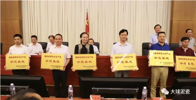 8月2日下午,湖南大球泥瓷藝有限公司在湖南省政府接受“省特色文化產(chǎn)業(yè)示范基地”授牌。湖南省副省長向力力,湖南省政府副秘書長彭翔,湖南省委宣傳部副部長楊金鳶,湖南省文化廳黨組書記、廳長禹新榮、湖南省財(cái)政廳黨組成員、副廳長莊大力,湖南省文化廳黨組成員、副廳長肖凌之等領(lǐng)導(dǎo)出席本次授牌儀式。相關(guān)廳局負(fù)責(zé)人以及14個(gè)市州宣傳部及文廣新局的相關(guān)領(lǐng)導(dǎo)參加了此次授牌儀式。