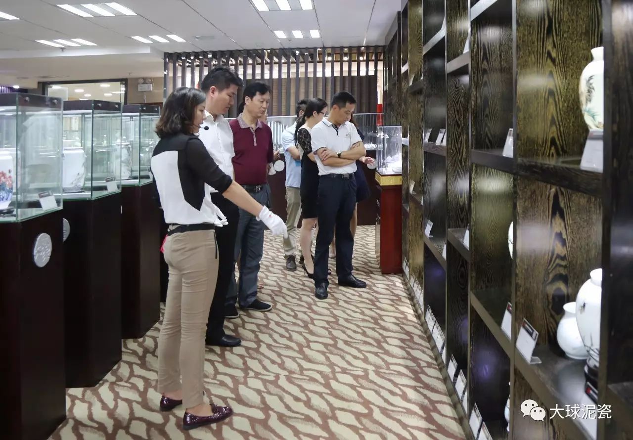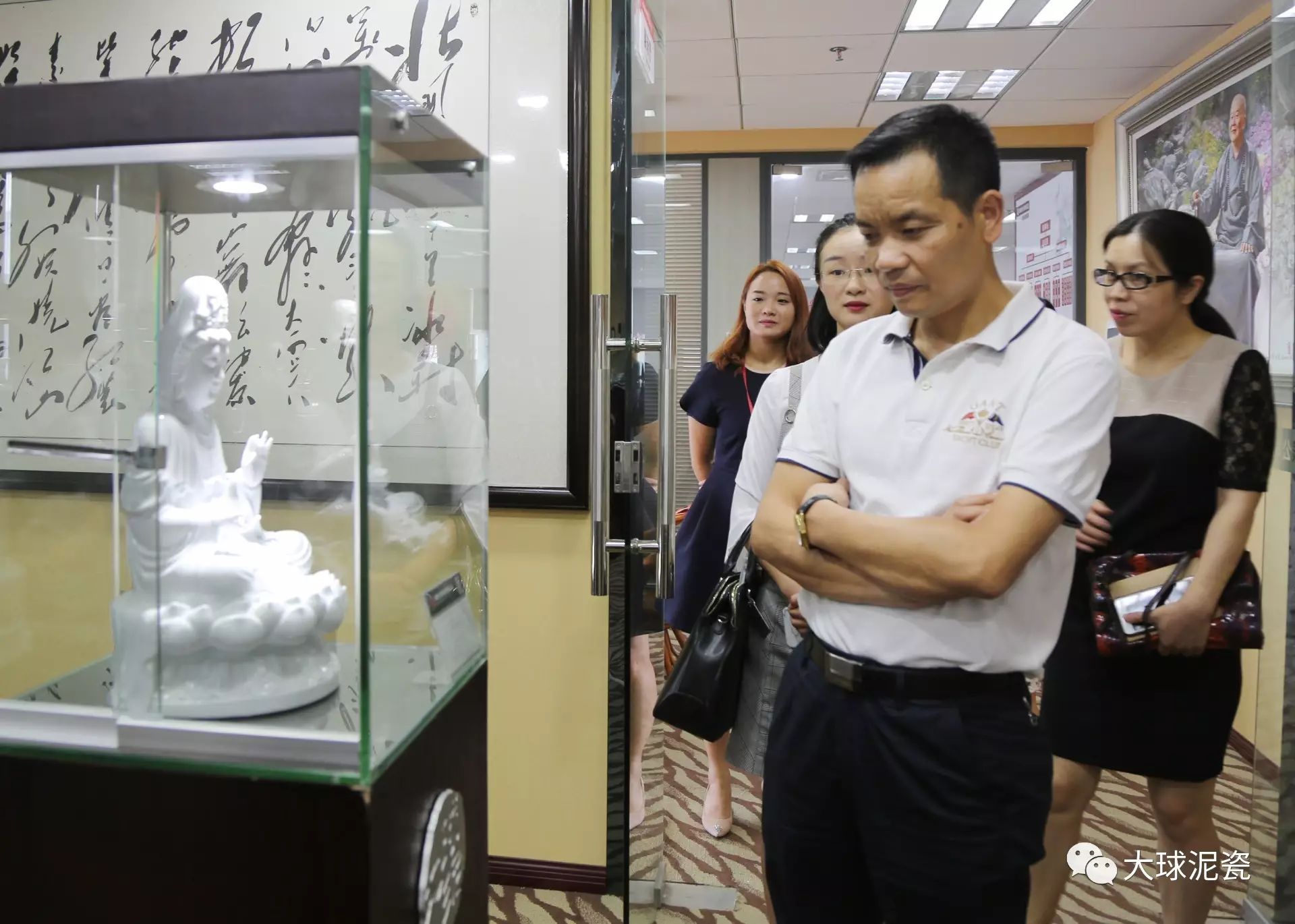 肖部長(zhǎng)一行在滕董的陪同下參觀了大球泥瓷精品展廳,仔細(xì)聽取了工作人員對(duì)大球泥原料保護(hù)性收藏、創(chuàng)新創(chuàng)意研發(fā),以及大球泥瓷在佛教系列、紅色系列、高端藝術(shù)收藏品、生活用瓷等作品的特點(diǎn)介紹。