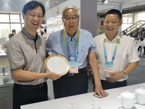 展覽會期間,中國陶瓷泰斗、清華美院教授張守智老師信步來到大球泥展廳,主動向隨行人員介紹:我與滕總相識多年,十余年前,滕總有遠(yuǎn)見,搶救性保護(hù)收藏了世界上已經(jīng)難尋的大球泥,這種泥做出的瓷器最具藝術(shù)價值與收藏價值。如這枚毛澤東同志的浮雕瓷像就是大球泥的經(jīng)典作品。一直以來我都囑咐他對待大球泥原料要審慎使用,現(xiàn)在我依舊要囑咐滕總,一定要把大球泥用好。