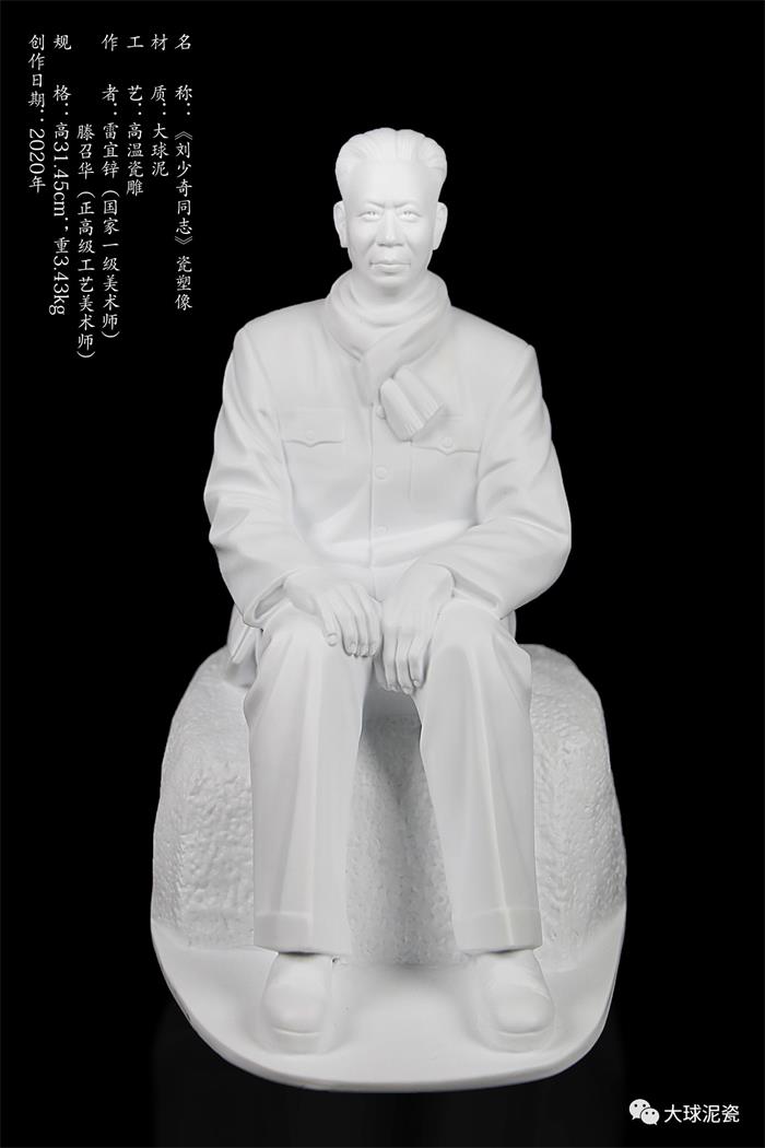 《劉少奇同志》瓷塑像是以湖南省美協(xié)副主席、國家一級美術(shù)師雷宜鋅創(chuàng)作的劉少奇同志雕塑像為原模,由湖南省陶瓷工藝大師、國家正高級工藝美術(shù)師滕召華創(chuàng)意設(shè)計,并對陶瓷工藝改進(jìn),創(chuàng)新燒制方法而成型。