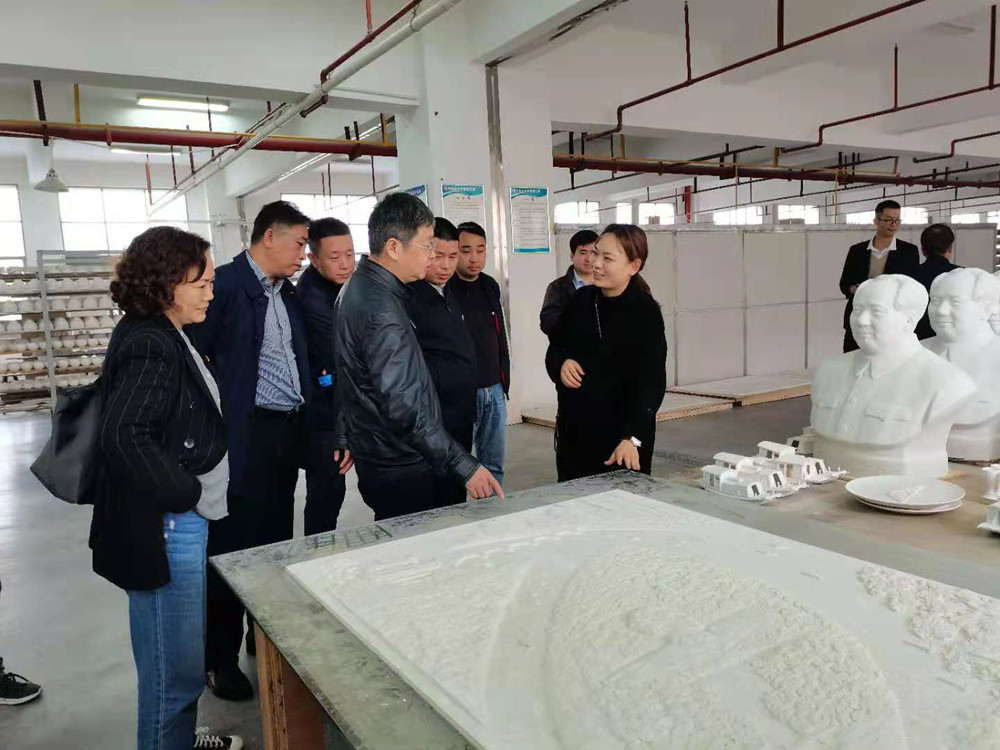 說工藝,論創(chuàng)新。總公司副總經(jīng)理姚衛(wèi)匯報(bào)到,公司正在將大型高溫浮雕瓷板畫運(yùn)用到公共文化藝術(shù)中,如地鐵站、博物館、展覽館、特色賓館等,特別是在北京地鐵十七號(hào)線將藝術(shù)生活化、生活藝術(shù)化。目前工廠正在為建黨100周年創(chuàng)作《千秋偉業(yè)》系列大型浮雕瓷板畫。