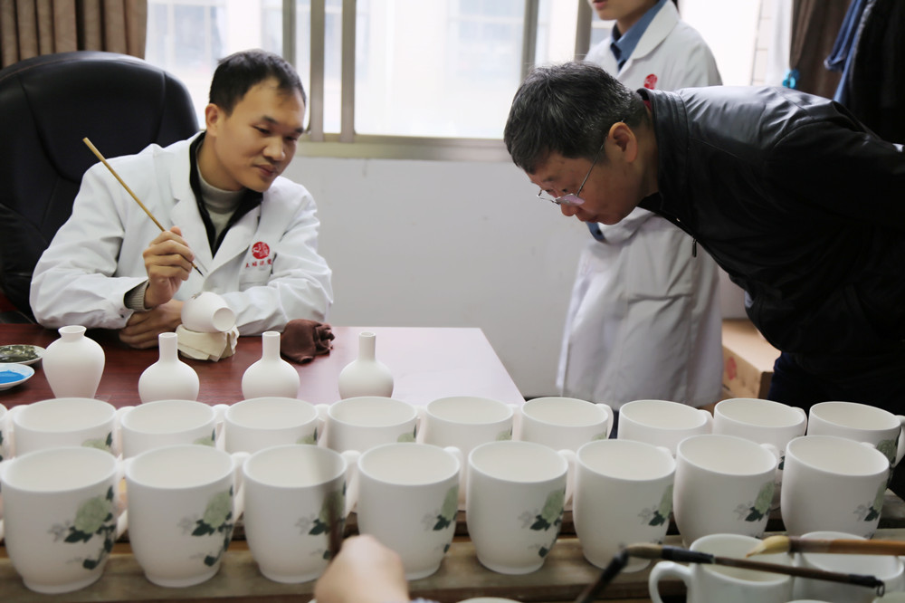 走基層,贊工藝。在工廠一線,謝組長(zhǎng)現(xiàn)場(chǎng)了解大球泥瓷藝的生產(chǎn)研發(fā)情況。醴陵工廠總經(jīng)理馬禮對(duì)整個(gè)生產(chǎn)工藝做了詳細(xì)講解。當(dāng)領(lǐng)導(dǎo)們看到幾位大師聚精會(huì)神在一筆一繪進(jìn)行創(chuàng)作時(shí),紛紛感嘆其工匠精神。大國(guó)工匠,一筆一劃皆是天下。
