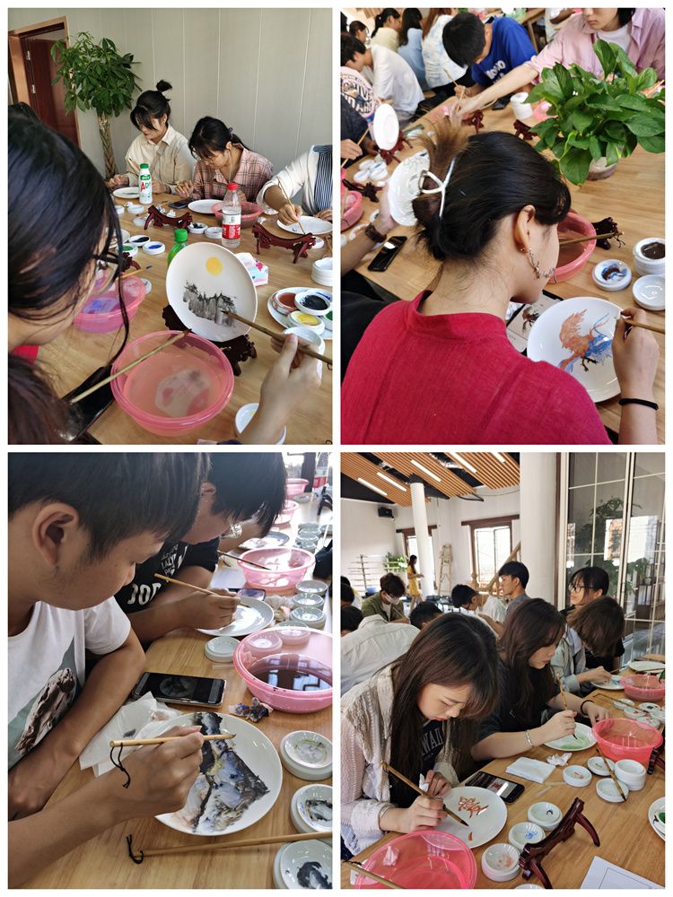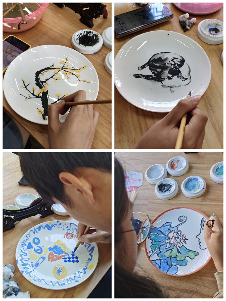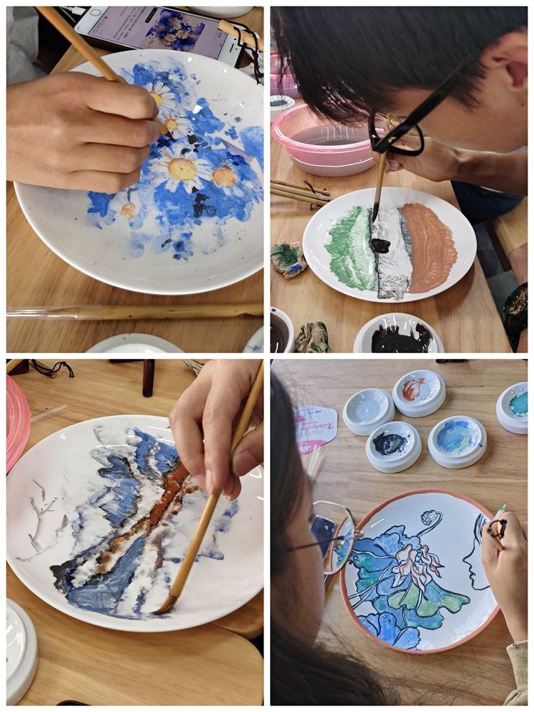 今天一大早,同學(xué)們滿心歡喜來到大球泥瓷藝術(shù)館,在國家正高級(jí)工藝美術(shù)師滕召華的指導(dǎo)下,大家統(tǒng)一挑選了一款白色瓷盤,一百多人瞬間沉靜,只聞瓷聲筆動(dòng),畫下心中所念所想,作為這個(gè)中秋的一份特別禮物。