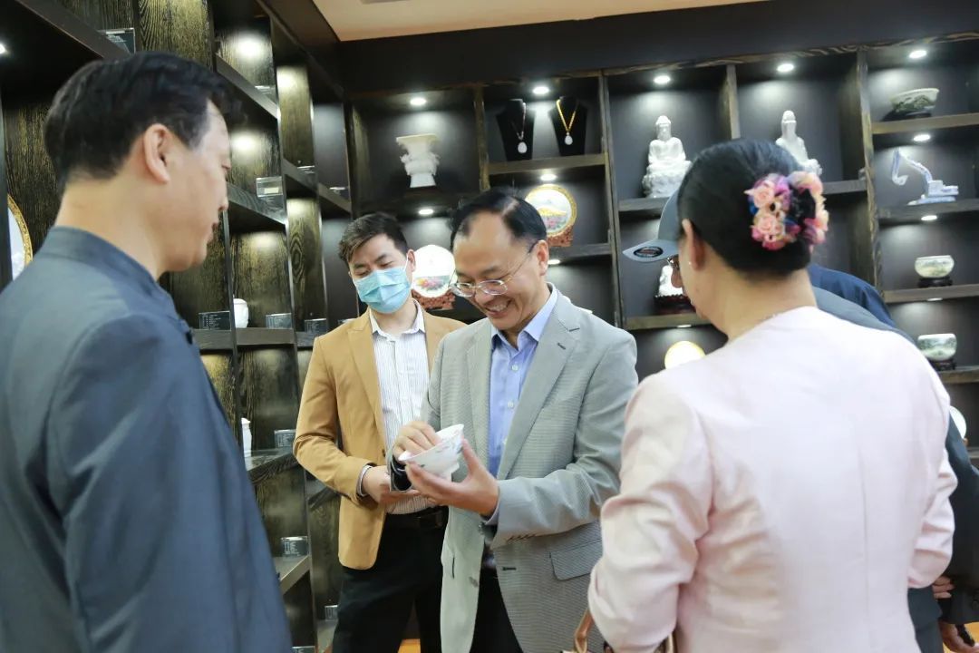 陳會長一行參觀了公司陶瓷研學(xué)場地、企業(yè)文化展廳與藝術(shù)陶瓷展館,觀看了公司宣傳片、99道制瓷工序、北京地鐵藝術(shù)工程。講解員圍繞制瓷珍稀原料研發(fā)、藝術(shù)陶瓷標準制定、核心知識產(chǎn)權(quán)申報等方面講述了公司十年積淀成果;著重介紹了紅色偉人、心愿祈福、藝術(shù)收藏、特別定制、出口國禮、生活文創(chuàng)六大品牌系列作品的價值與特點。